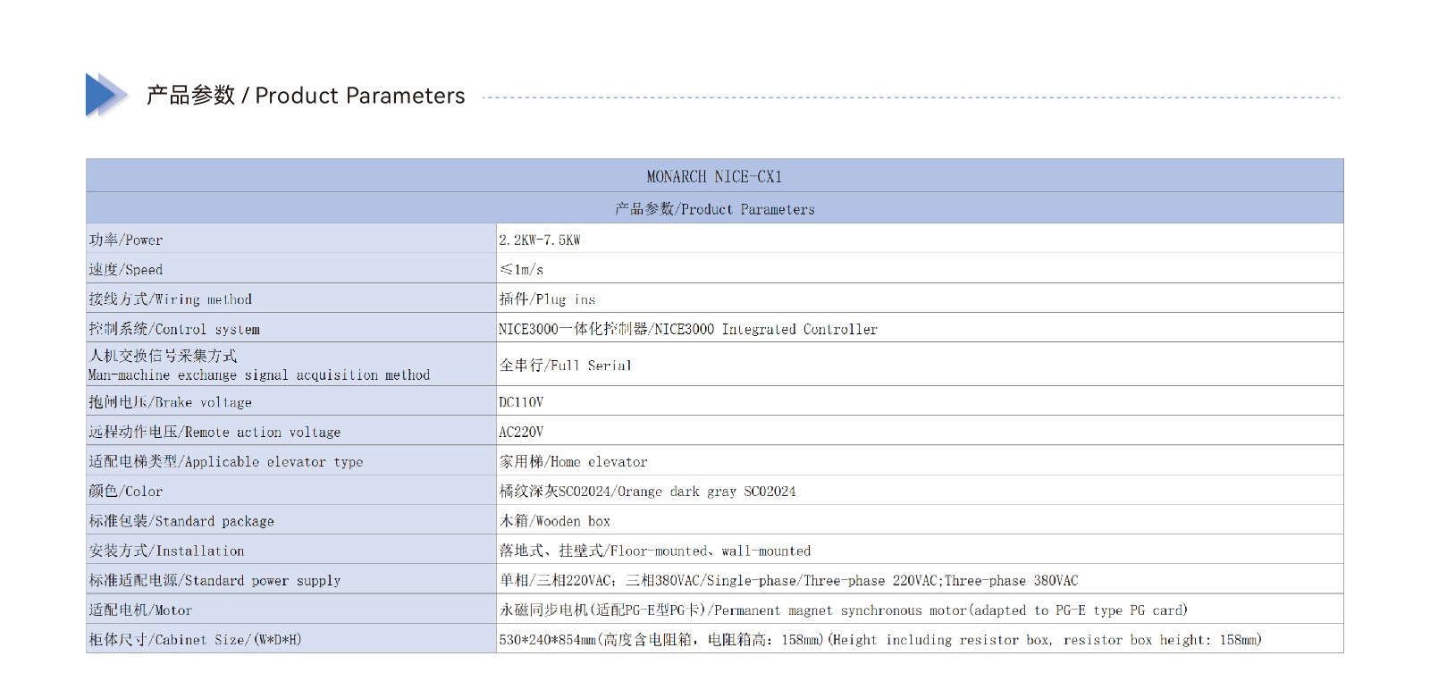 电梯技术参数表